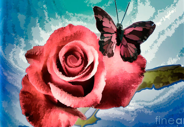 Diamondpainting Roos met vlinderDiamondpainting roos met vlinder